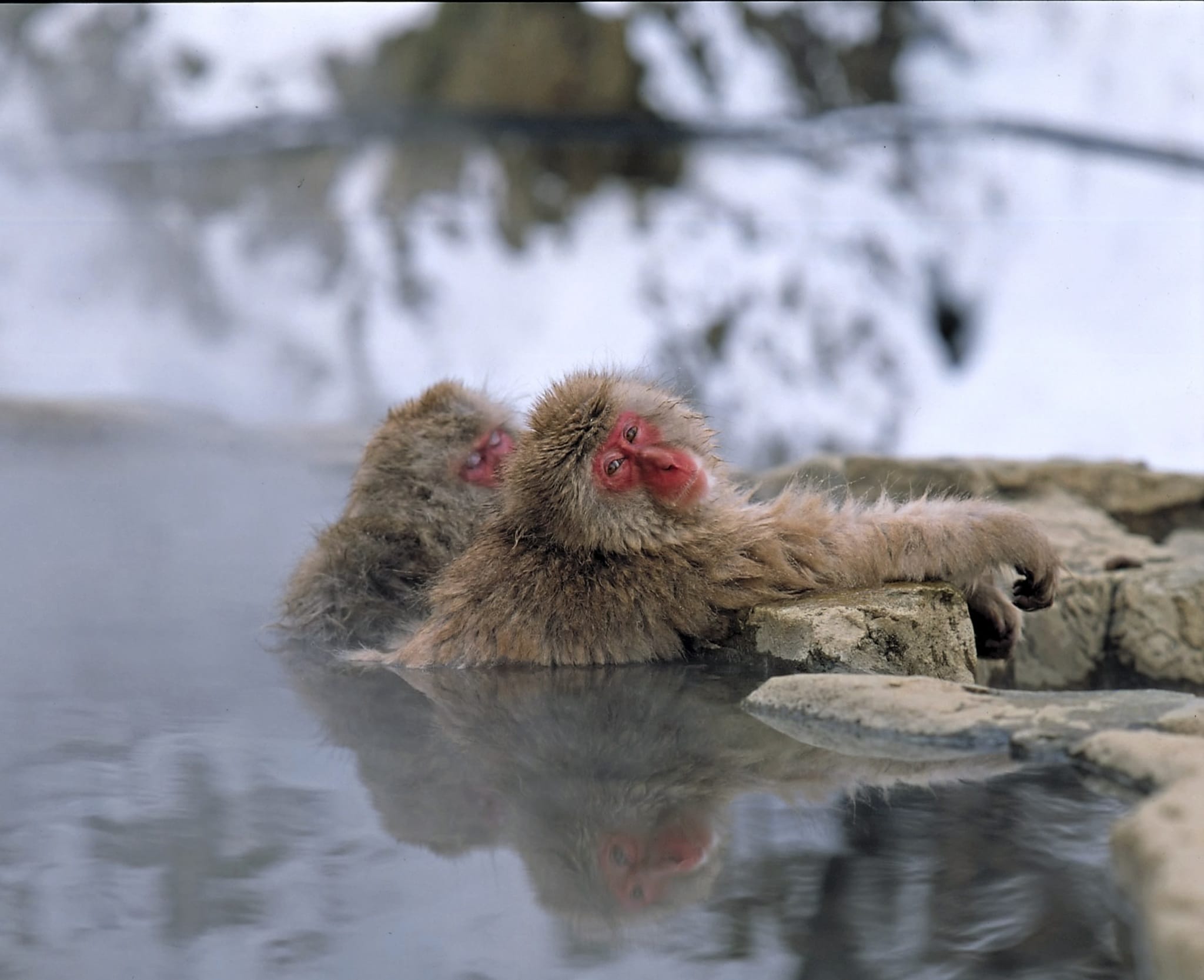 Badende Schneeaffen von Yamanouchi, Ankunft in Nagano